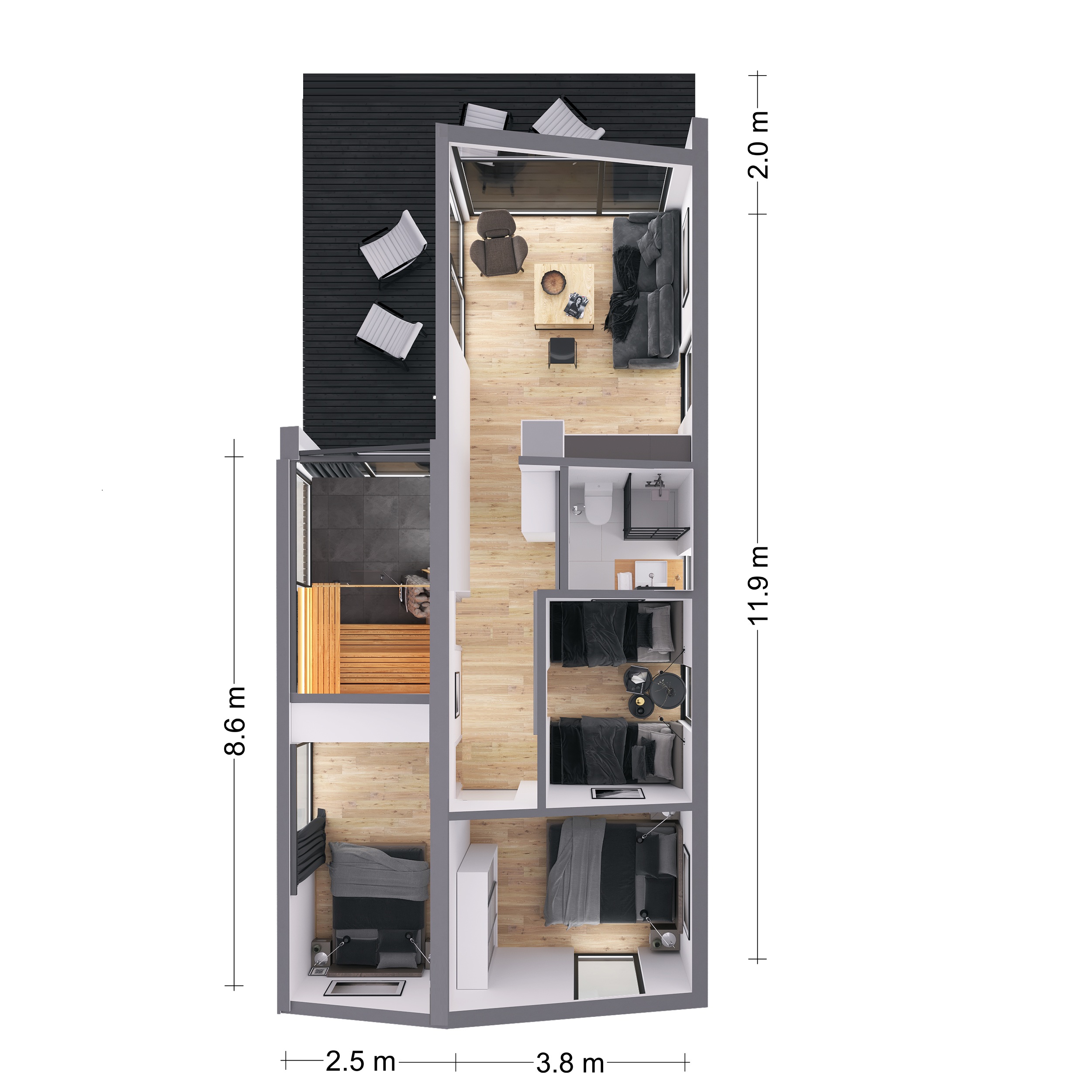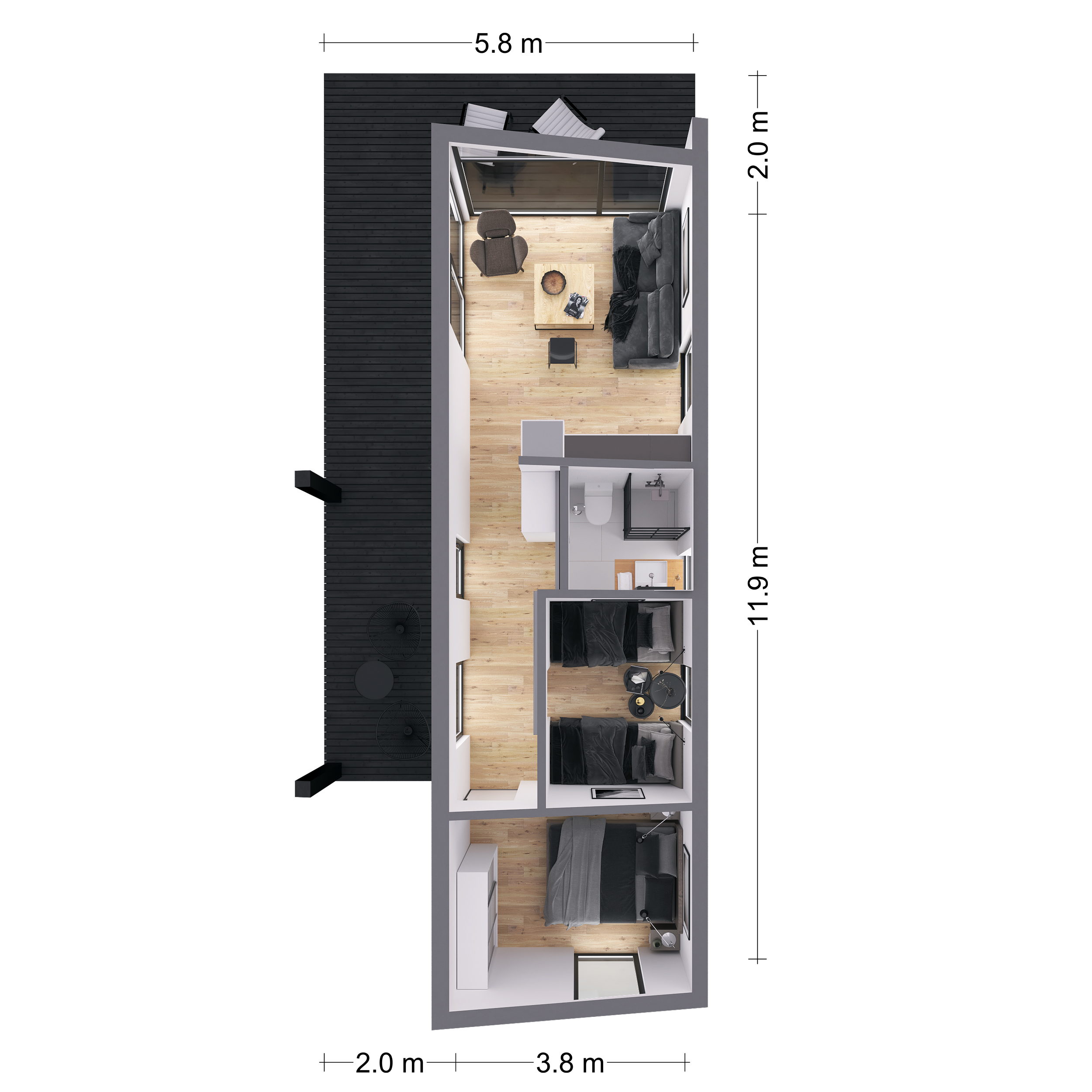 GO M LODGE consists of two modules, offering a spacious and functional solution for 3-4 people.