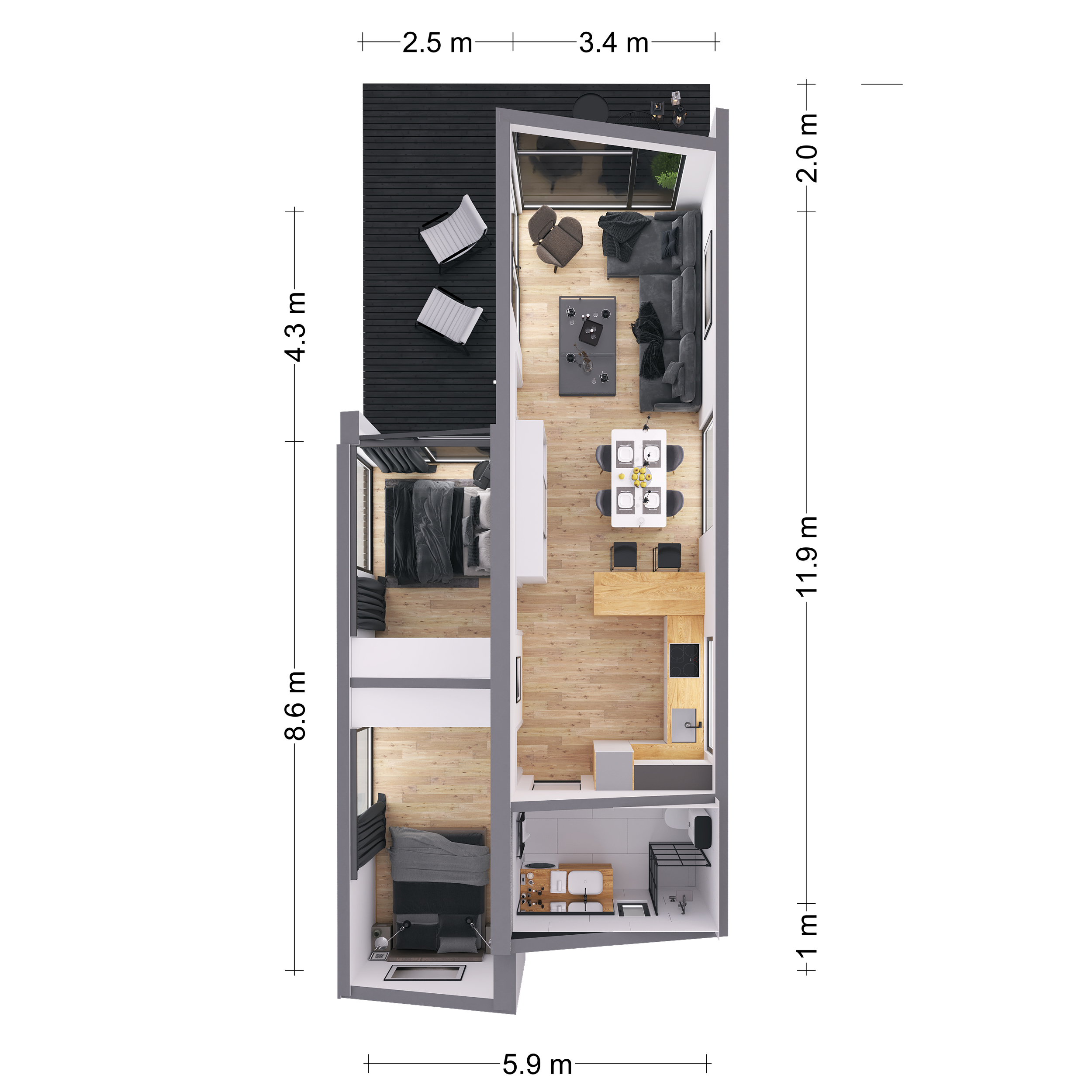 GO XS Lodge – a compact yet smartly designed space with everything you need for comfortable living: